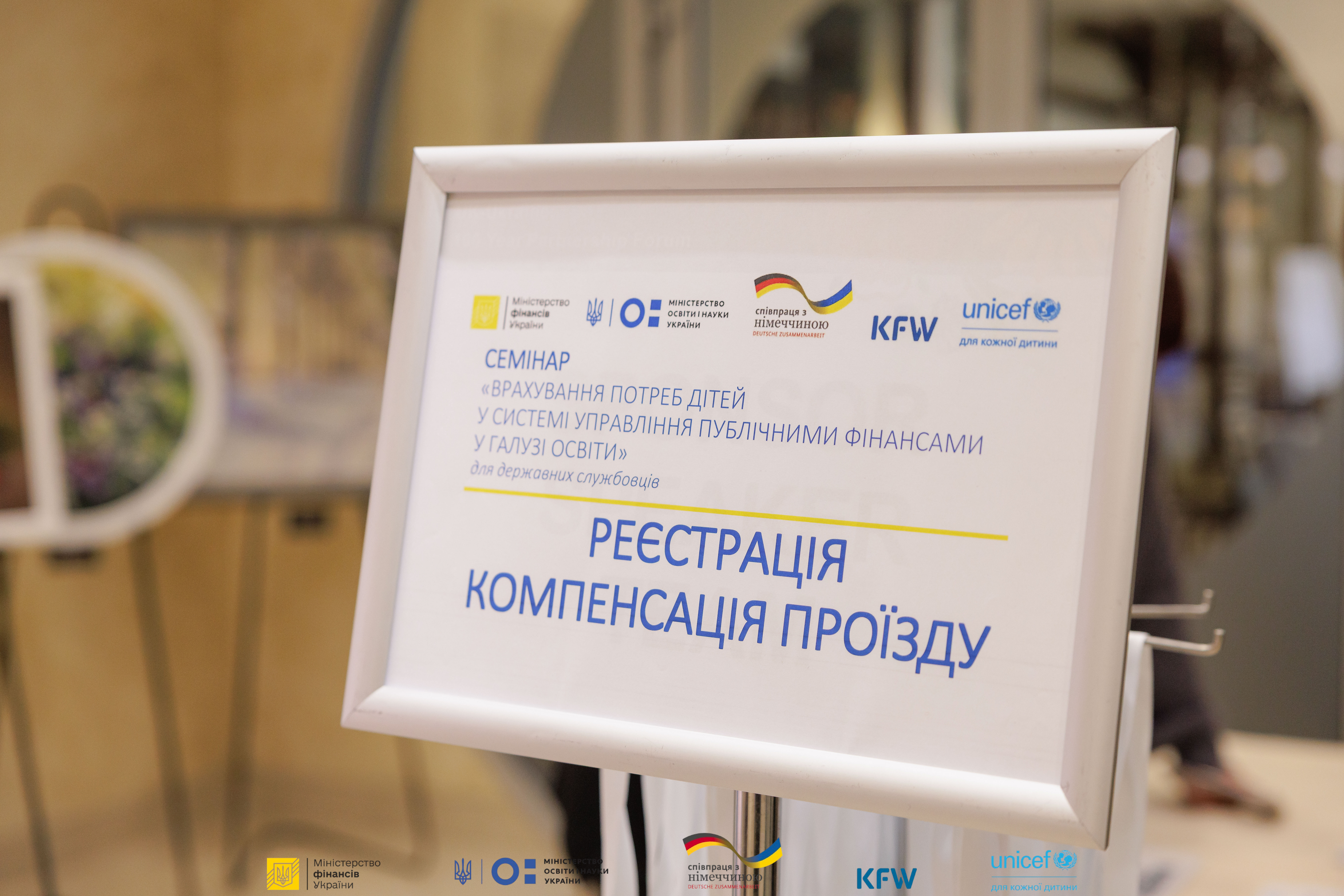 Дитячий фонд ООН (ЮНІСЕФ) спільно з Міністерством фінансів України та Міністерством освіти і науки України за фінансової підтримки Федерального міністерства економічного співробітництва і розвитку (BMZ) через державний банку розвитку KfW провели тренінг «Врахування потреб дітей у системі управління публічними фінансами у галузі освіти» для державних службовців.